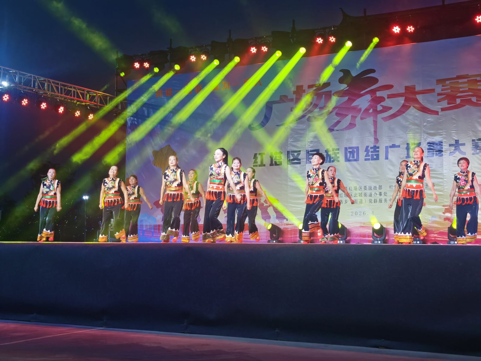 本次大赛以“舞动健康·乐享生活”为主题,由中共红塔区委统战部、红塔区文化和旅游局主办,红塔区北城街道办事处、红塔区文化馆承办。赛事聚焦民族团结与全民健身,吸引了全区各乡(街道)、社区的多支广场舞团队踊跃参与,截止报名时间,共收到54支队伍报名参赛,每支队伍12-24人,参赛人员年龄覆盖范围广,充分展现了红塔区群众广泛参与、积极健身的良好风貌。