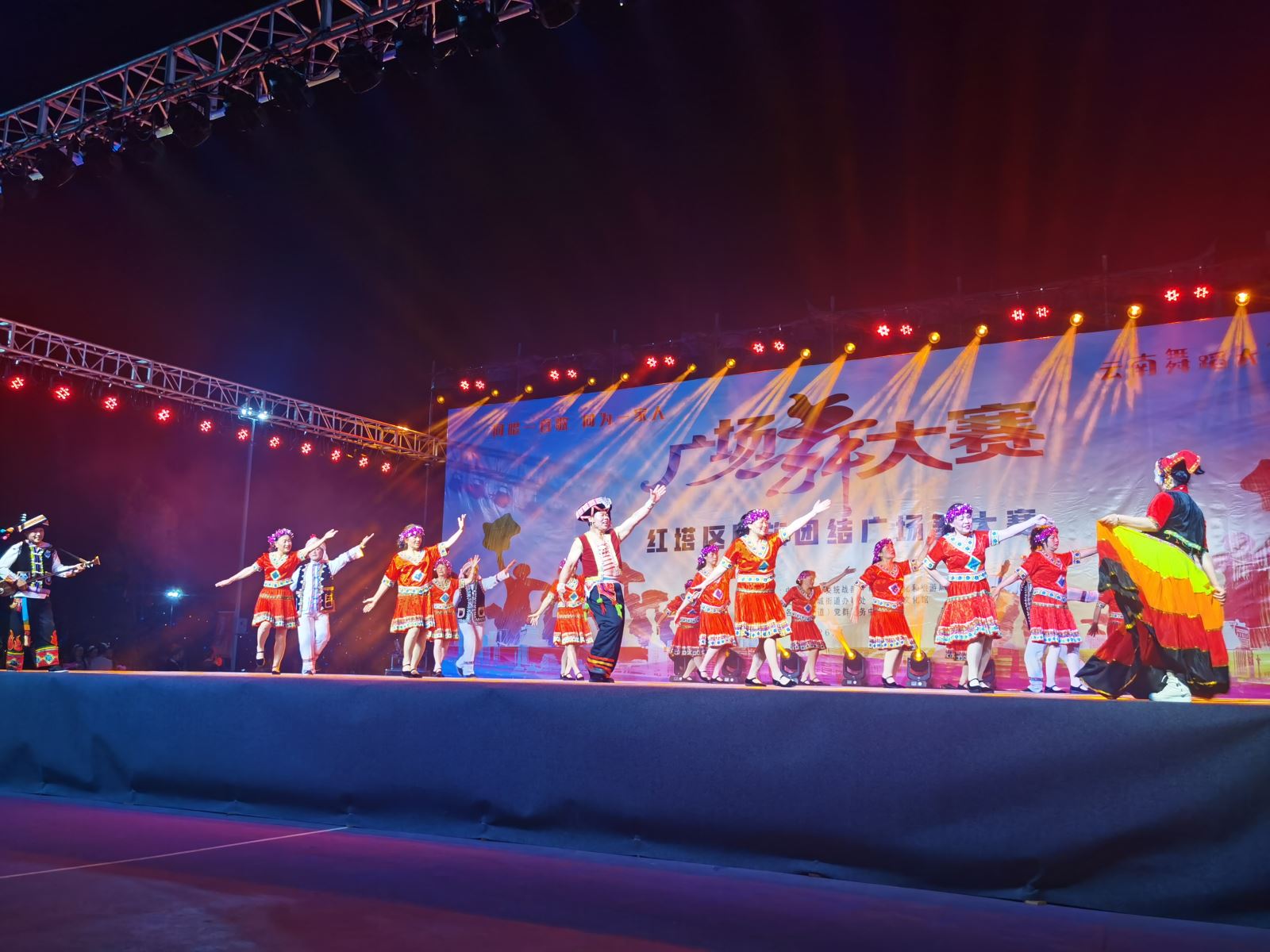 本次大赛以“舞动健康·乐享生活”为主题,由中共红塔区委统战部、红塔区文化和旅游局主办,红塔区北城街道办事处、红塔区文化馆承办。赛事聚焦民族团结与全民健身,吸引了全区各乡(街道)、社区的多支广场舞团队踊跃参与,截止报名时间,共收到54支队伍报名参赛,每支队伍12-24人,参赛人员年龄覆盖范围广,充分展现了红塔区群众广泛参与、积极健身的良好风貌。